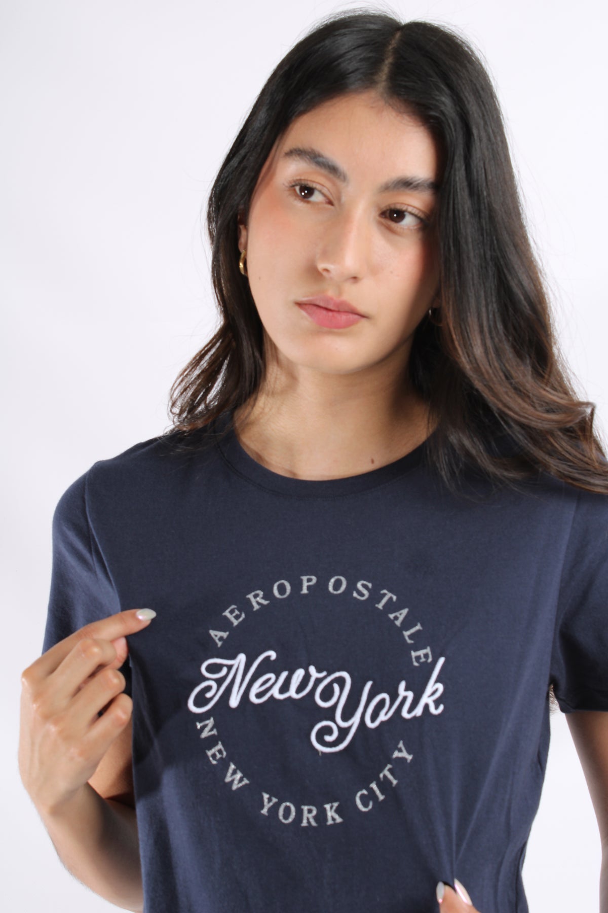La modelo mide 1.63 cm y está utilizando talla S
